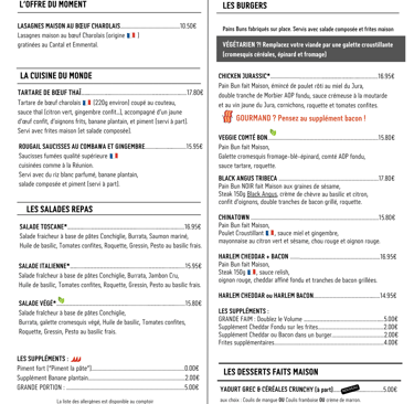 Certains plats peuvent être temporairement indisponibles selon nos arrivages frais quotidiens.